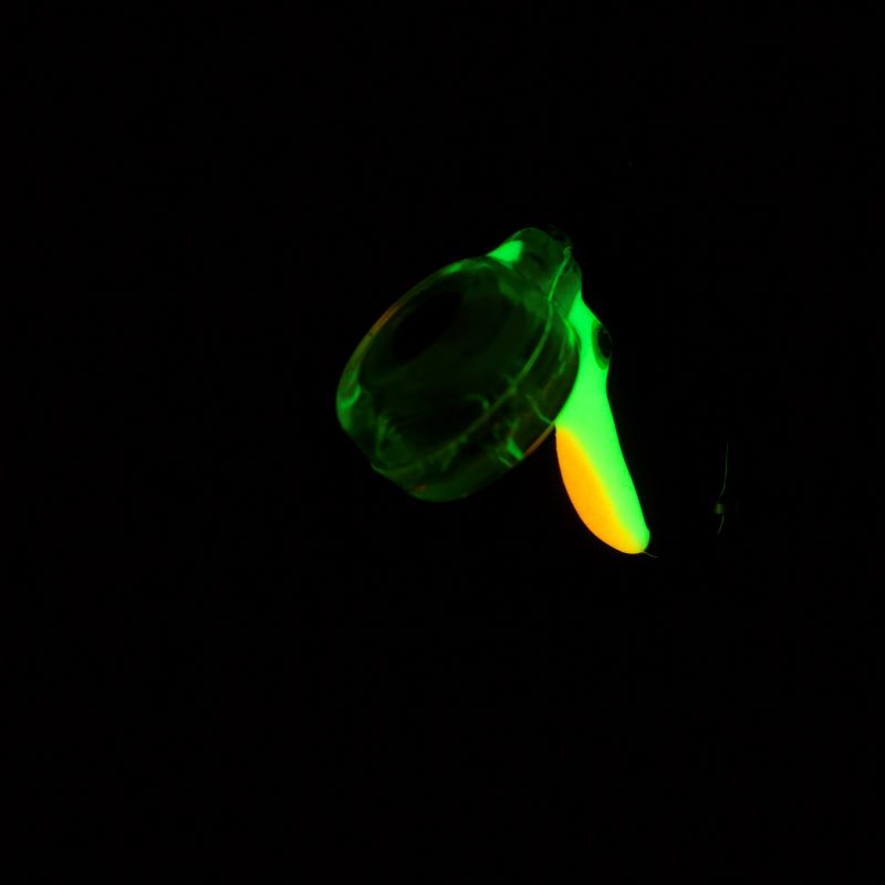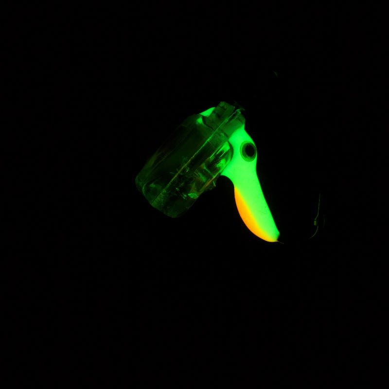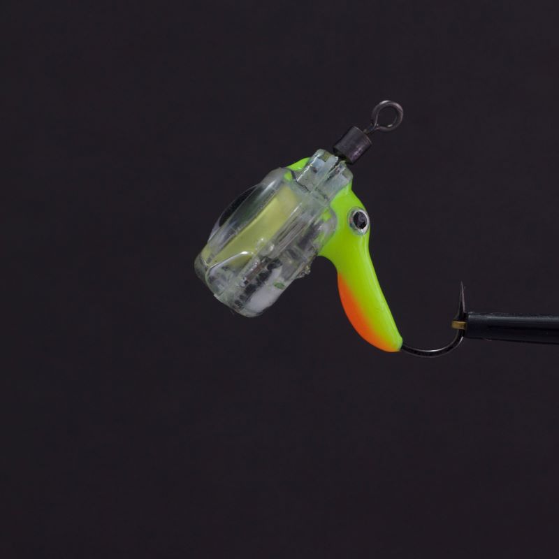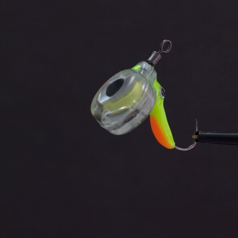 Flashing LED Jig – Green – Irresistible Glow for Trophy Fish! This innovative jig combines a bright phosphorescent body with a blinking LED eye, making it highly effective for attracting Arctic char and other predatory fish. Equipped with a size 6 hook, it weighs approximately 2.5-3g and requires no additional weight. Perfect for enticing passive fish, often drawing in trophy-sized catches of up to 4.5-5 kg during testing.