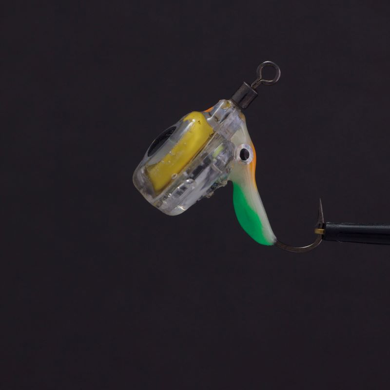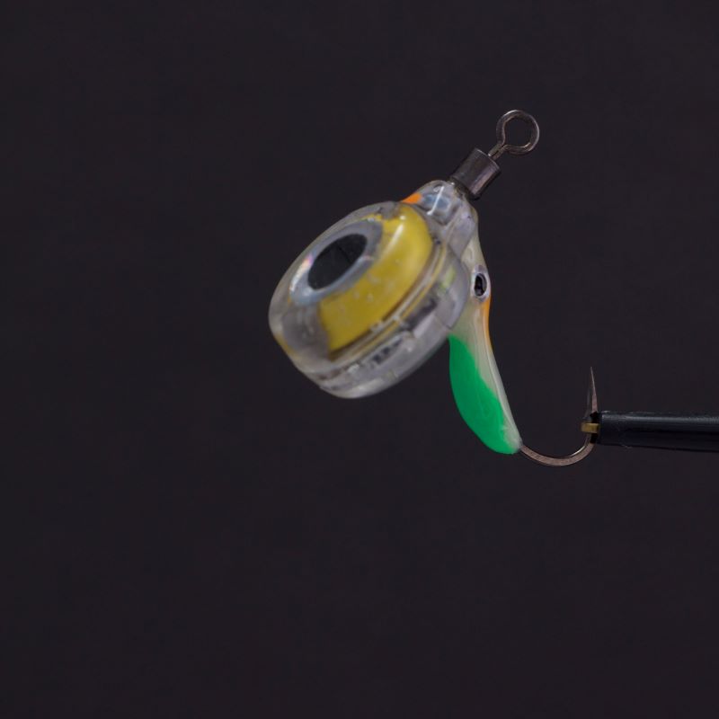 Flashing LED Jig – MIX – Irresistible Glow for Trophy Fish! This innovative jig combines a bright phosphorescent body with a blinking LED eye, making it highly effective for attracting Arctic char and other predatory fish. Equipped with a size 6 hook, it weighs approximately 2.5-3g and requires no additional weight. Perfect for enticing passive fish, often drawing in trophy-sized catches of up to 4.5-5 kg during testing.